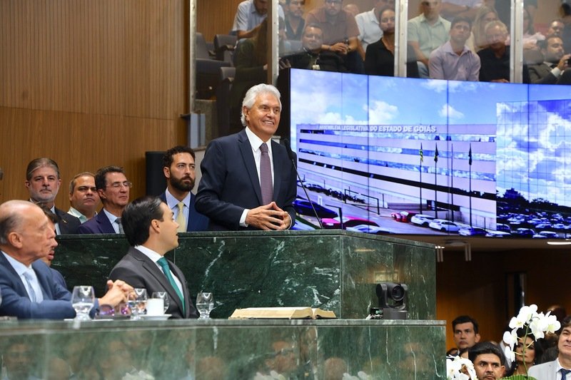 Ao iniciar sua fala, Ronaldo Caiado agradeceu às autoridades presentes, parlamentares e lideranças políticas que acompanharam a solenidade, ressaltando a dimensão do evento dentro e fora da Assembleia. Ele também fez questão de reconhecer o apoio familiar, com menção especial à primeira-dama Gracinha Caiado, a quem atribuiu papel fundamental nas políticas sociais desenvolvidas em Goiás.