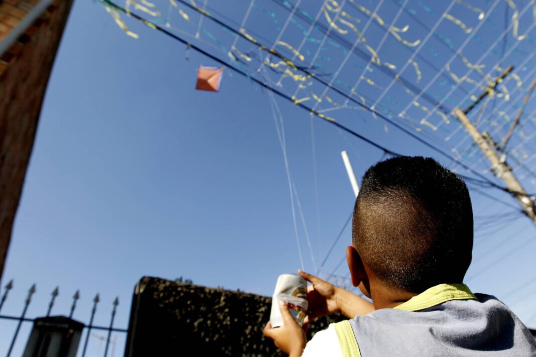 Garoto soltando pipa na rua – Imagem ilustrativa