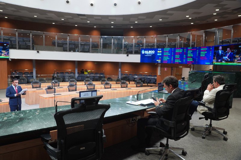 A Assembleia Legislativa do Estado de Goiás (Alego) realizou, na tarde desta quarta-feira, 8, sessão ordinária deliberativa híbrida que resultou na aprovação de seis matérias, entre proposições legislativas e requerimentos. Conduzido pelo 1º vice-presidente, deputado Issy Quinan (MDB), o encontro marcou a segunda sessão deliberativa da semana e contou com a presença de 38 parlamentares no painel do Plenário Iris Rezende Machado, no Palácio Maguito Vilela.