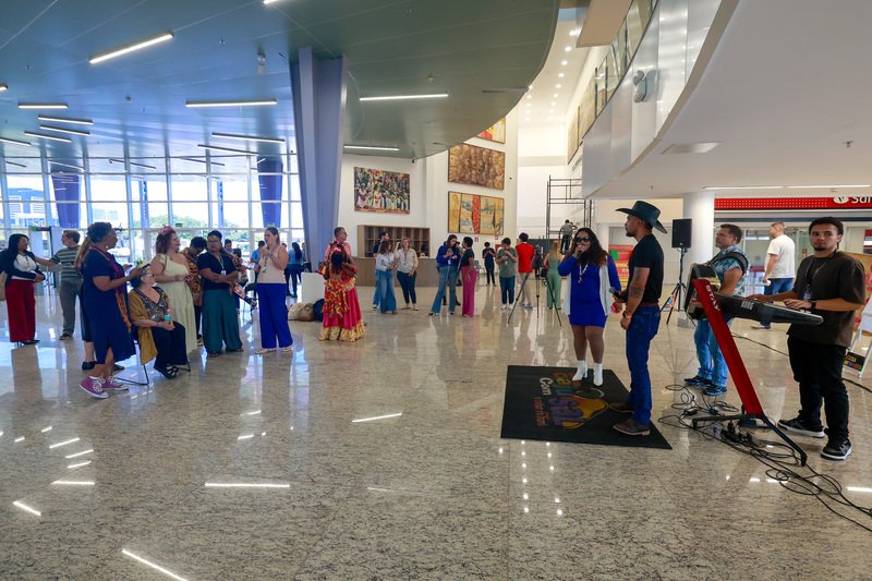 A Assessoria Adjunta de Atividades Culturais realizou, na manhã desta segunda-feira, 30, o encontro “Elas em movimento: vozes que ocupam”, em celebração ao encerramento do mês de março. O evento teve local no saguão principal do Palácio Maguito Vilela e contou com a presença de lideranças femininas. A abertura foi agraciada com a apresentação musical da banda de forró Caju com Sal.