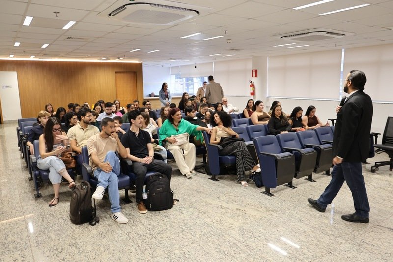 Após a parte teórica, os acadêmicos realizaram uma visita guiada pelas instalações, incluindo as salas das comissões, gabinetes parlamentares no Bloco C e a Galeria dos Ex-Presidentes. O encerramento ocorreu no Plenário Iris Rezende, onde os alunos puderam acompanhar a sessão ordinária de hoje, vivenciando o processo legislativo em tempo real.