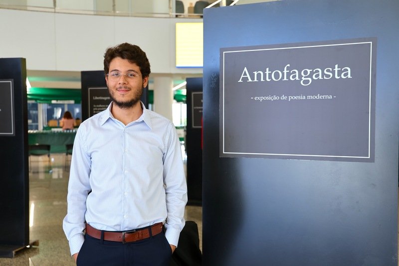 A Assembleia Legislativa do Estado de Goiás (Alego) recebe, entre os dias 15 e 30 de abril, a mostra “Antofagasta: exposição de poesia moderna”, instalada no saguão principal do Palácio Maguito Vilela. A iniciativa reúne sete poemas do estudante de direito da Pontifícia Universidade Católica de Goiás (PUC-GO), Pedro Magno Carvalho de Leles, com foco em reflexões sobre relações sociais, tradições e aspectos culturais da região Centro-Oeste.