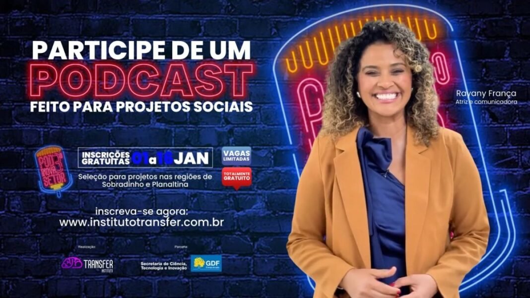 Intitulada “Podcast Inova 3º Setor – Comunicação Digital e Transparência para OSCs do DF”, a iniciativa é do Instituto Transfer em parceria com a Secretaria de Ciência, Tecnologia e Inovação do DF – SECTI, através da emenda parlamentar do deputado Pepa.