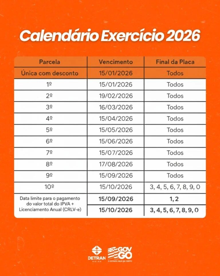 Os motoristas goianos devem ficar atentos: o vencimento do IPVA 2026 em Goiás está marcado para o dia 15 de janeiro. A data vale tanto para o pagamento da primeira parcela quanto para a quitação total do imposto com 8% de desconto.